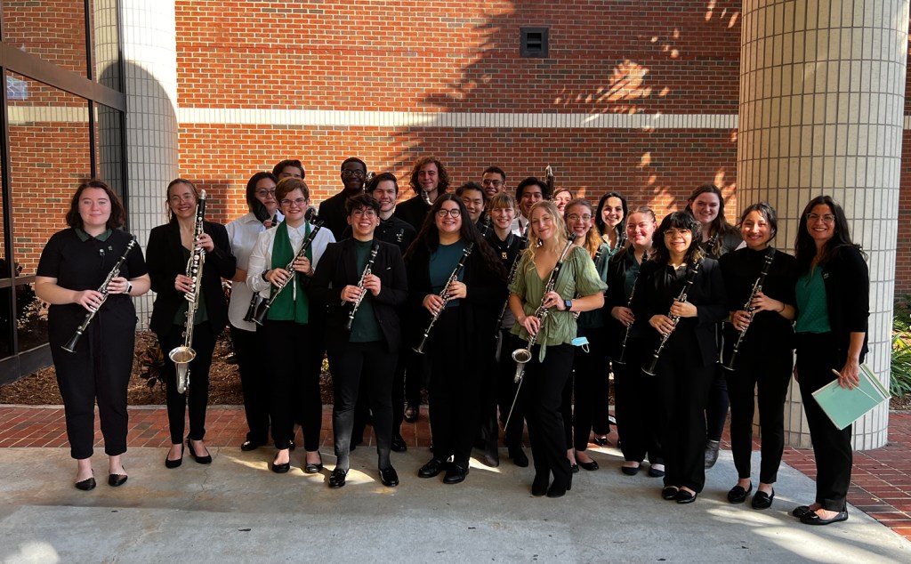 The Stetson University Clarinet Choir, under the direction of Dr. Jessica Speak, was a featured university ensemble at the 32nd annual UCF Clarinet Day. This year’s event celebrated the clarinet choir and the day’s events included performances by youth ensembles, high school choirs, community ensembles, and University ensembles. The Stetson Clarinet Choir members are all students at Stetson and includes music majors, music minors, and students pursuing degrees outside of the School of Music. They performed a transcription of “Festive Overture” by Dimitri Shostakovich and “Claremont Suite” by Jonathan Russell. Congratulations!