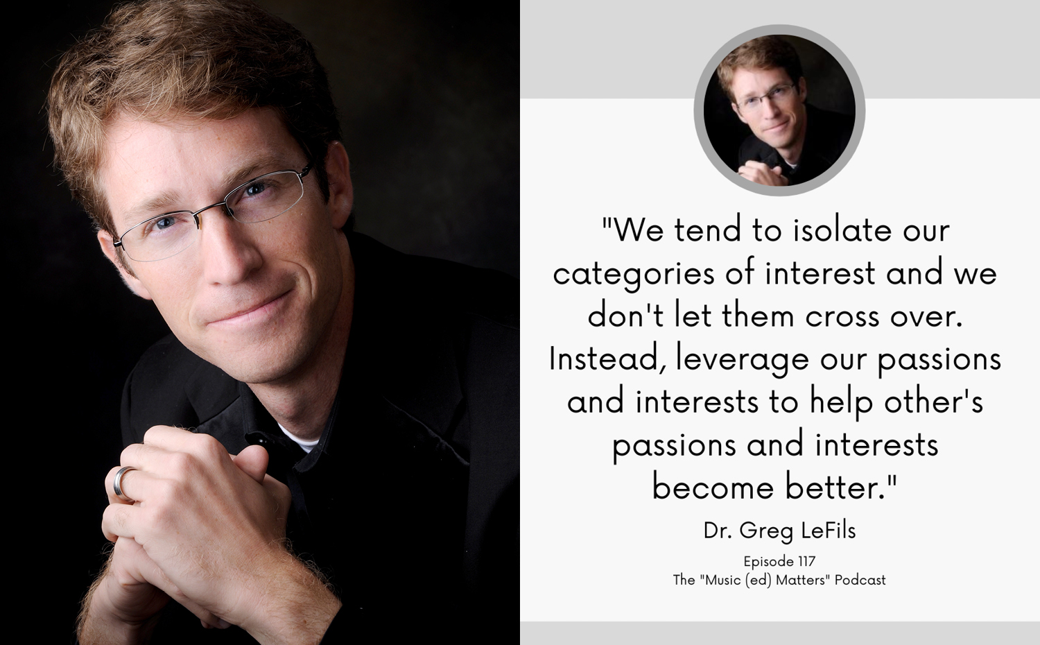 Dr. Greg LeFils was interviewed as the featured guest on the “Music (ed) Matters Podcast” on July 14, this past summer. The episode (#117) was published on Aug. 2 as the “August Tune-Up” for teachers heading back into the music classrooms.