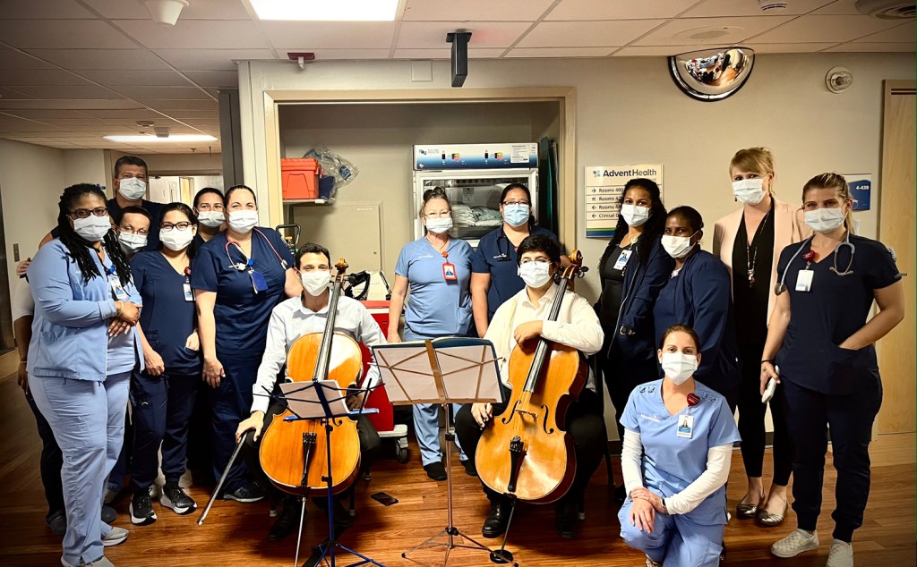 Freshman Cellists, Alejandro Salazar (Venezuela/Peru) and Andrés Donoso Cepeda (Chile) performed for the staff and patients at AdventHealth DeLand on September 12th.