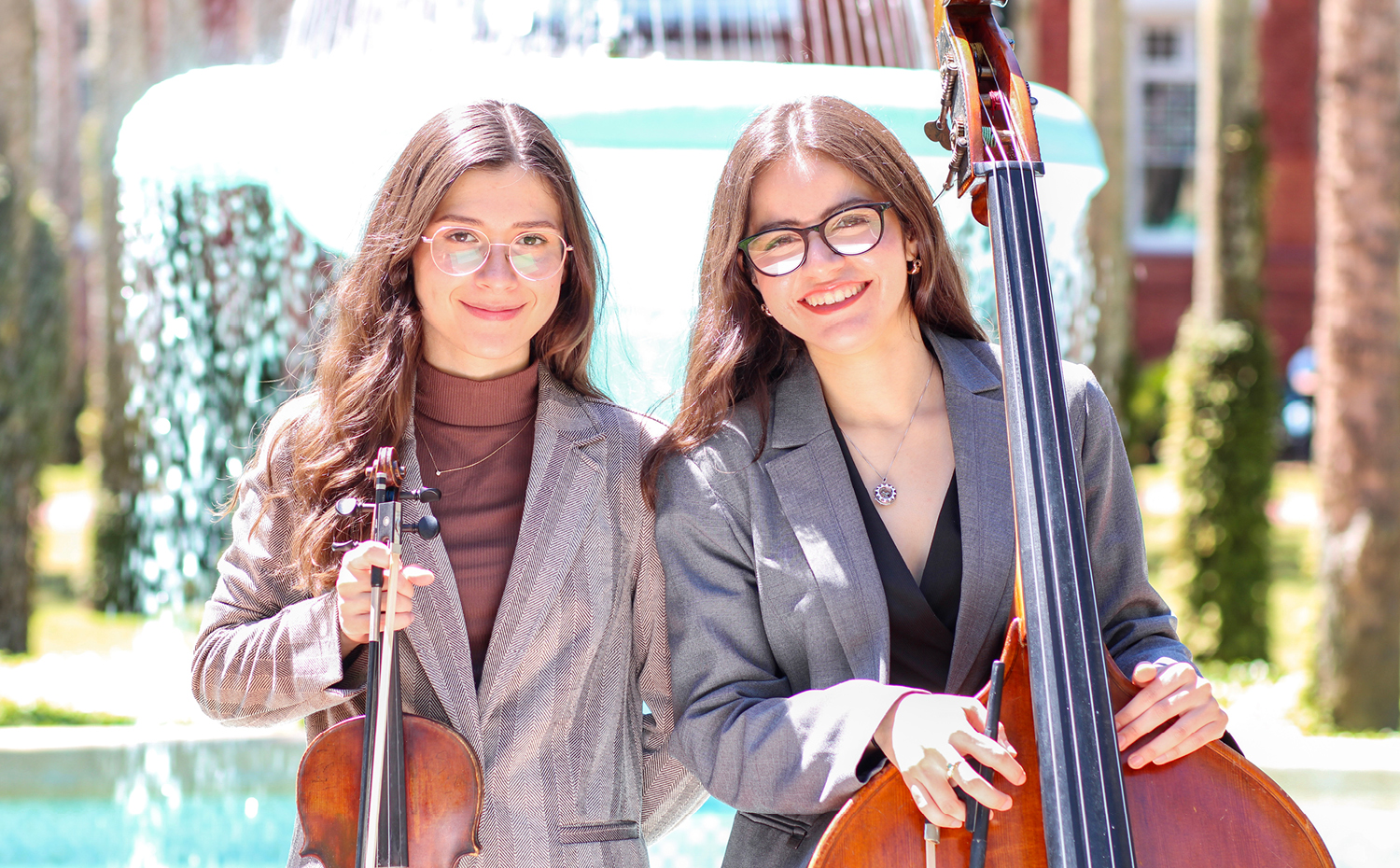 Diana Quintero, violin, and Gildalee Yrigoyen, bass, are excited to begin their assistantship with the UCF School of Performing Arts and the Orlando Philharmonic Orchestra. Diana, who holds a Bachelor of Music in Performance, studied under Routa Kroumovitch-Gomez; and Gildalee Yrigoyen, holding a Bachelor of Arts in World Languages and Cultures with a minor in Music, studied under Michael Hill at Stetson University School of Music. Both have performed together throughout their years at Stetson in orchestral ensembles and are excited to continue their musical journey together at the graduate level.