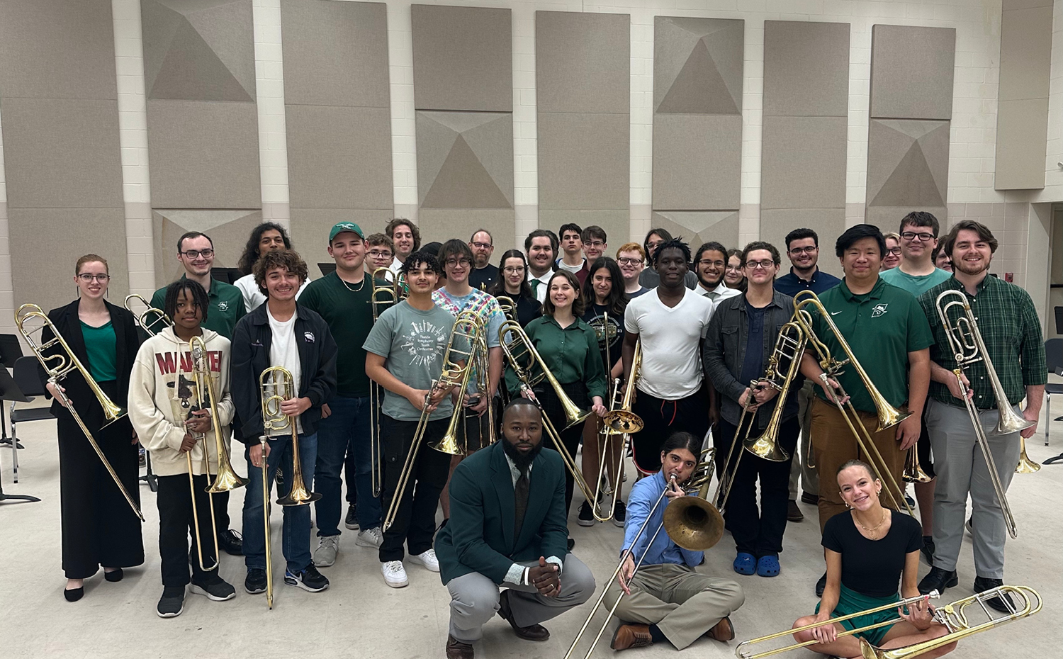 Stetson University’s inaugural Trombone Day event was a rousing success! About 30 trombonists traveled from near and far across the Southeast for a full day of enriching instruction, performance and fellowship. Attendees participated in a group warmup session, observed a masterclass led by Stetson Assistant Professor of Trombone Dr. Dunwoody Mirvil, rehearsed in a mass trombone choir setting, and finally, wrapped up the day’s activities with a performance for parents and guests.