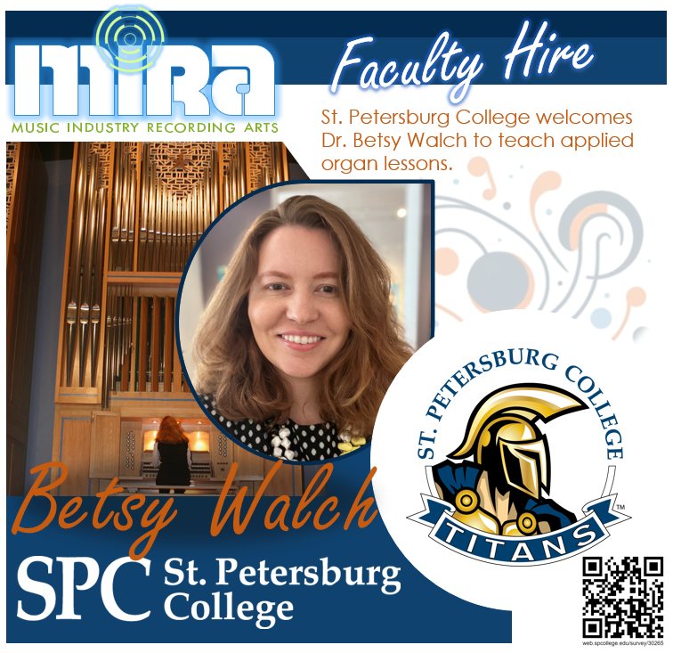 St. Petersburg College has appointed Dr. Betsy Walch (B.M. and B.A. 2010) as their Professor of Applied Organ.