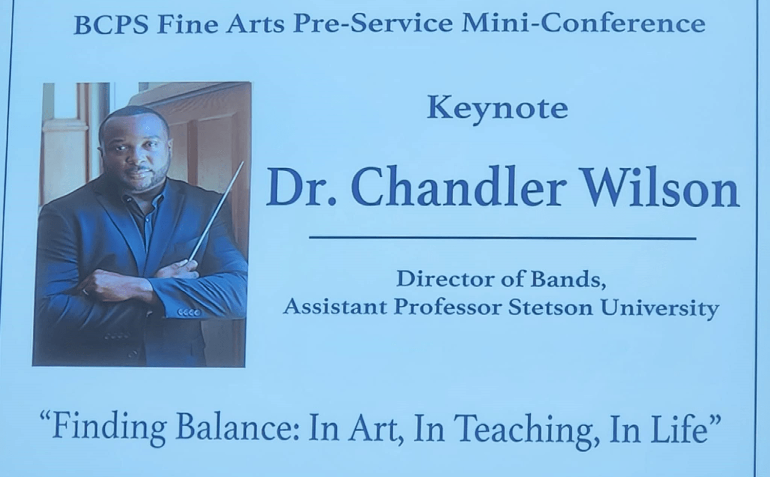 Dr. Wilson’s connection to the district runs deep, as he began his career in Broward County, serving as Director of Bands at Hollywood Hills High School, Olsen Middle School, and Cooper City High School. His return as keynote speaker represents both a personal and professional milestone.