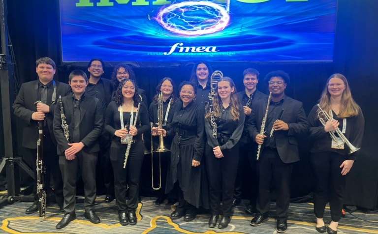 Congratulations to our students who participated in the 2026 Florida Intercollegiate Band at the Florida Music Education Association Conference. The ensemble presented an outstanding concert featuring a world premiere by award-winning composer Omar Thomas, commissioned by the Florida Bandmasters Association in collaboration with collegiate ensembles across the state of Florida.