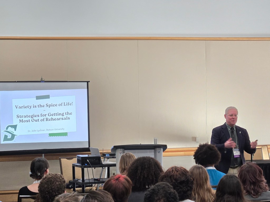 In addition, Lychner presented a session titled “Variety is the Spice of Life! – Strategies for Getting the Most Out of Rehearsals” to enthusiastic attendees that included many Stetson alumni and students.