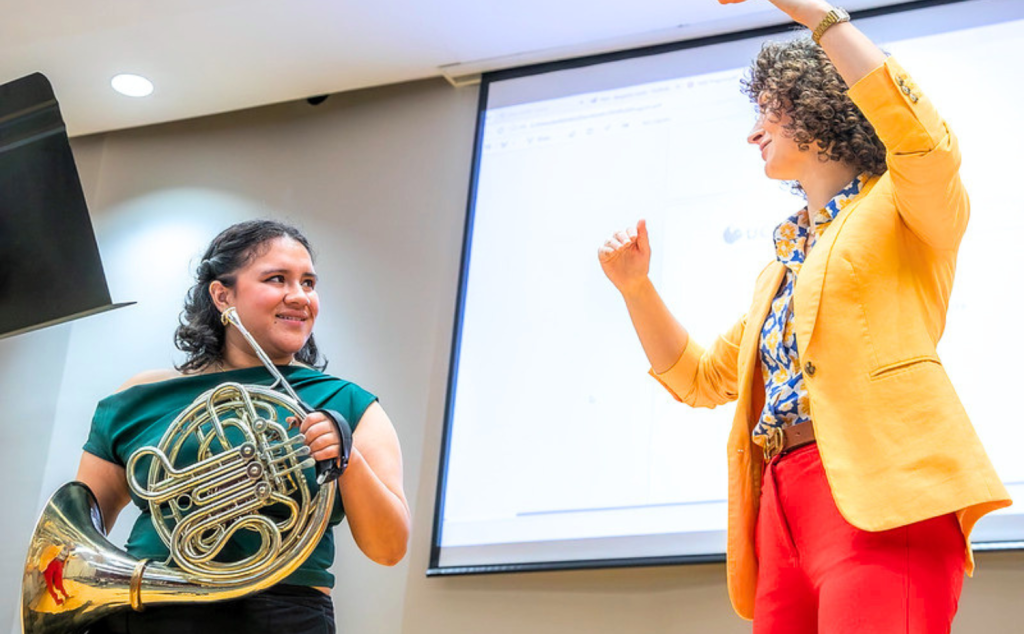 The festival featured a full schedule of activities that guided participants through both individual and group-based learning experiences, including a large group warm-up session, a masterclass led by featured guest artist Kate Warren and a recital highlighting university horn studios from across the state. During the masterclass, Carlissa Gudiño, a junior music major at Stetson University, was among the selected performers, receiving individualized feedback in a professional setting. The program also included a special-topics lecture and a horn ensemble reading session, which featured different genres of music.